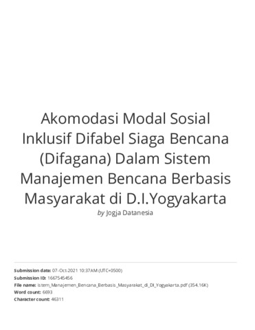 Akomodasi Modal Sosial Inklusif Difabel Siaga Bencana (Difagana) Dalam Sistem Manajemen Bencana Berbasis Masyarakat di D.I.Yogyakarta.pdf Download (3MB) | Preview |