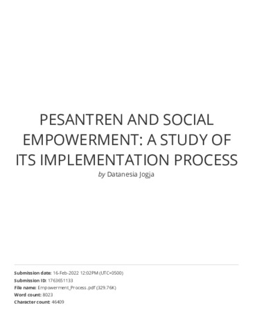 PESANTREN AND SOCIAL EMPOWERMENT_ A STUDY OF ITS IMPLEMENTATION PROCESS.pdf Download (3MB) | Preview |