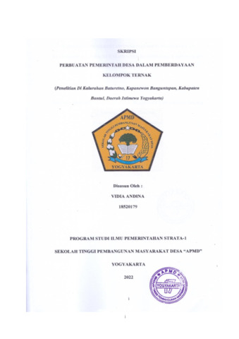 Andina, Vidia (2022) Perbuatan Pemerintah Desa Dalam Pemberdayaan Kelompok Ternak (Penelitian di kalurahan Baturetno, Kapanewon Banguntapan, Kabupaten Bantul, Daerah Istimewa Yogyakarta. Sarjana thesis, SEKOLAH TINGGI PEMBANGUNAN MASYARAKAT DESA STPMD "APMD".