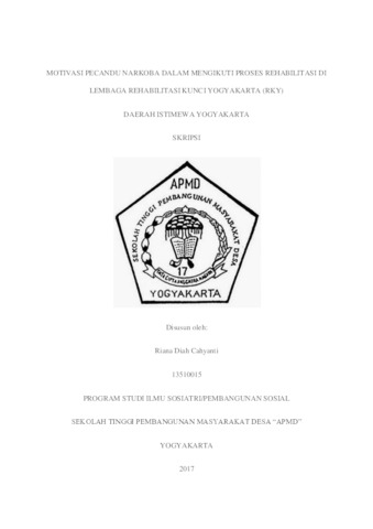 Riana, Diah Cahyanti (2017) MOTIVASI PECANDU NARKOBA DALAM MENGIKUTI PROSES REHABILITASI DI LEMBAGA REHABILITASI KUNCI YOGYAKARTA (RKY) DAERAH ISTIMEWA YOGYAKARTA. [Experiment]