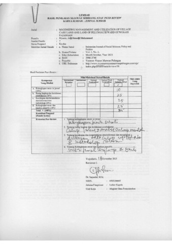Adji Suradji Muhammad, Dr., S.Sos., M.Si. (2023) Peer Review "Maximizing Management And Utilization of Village Cash Land And Land Of Pelungguh Ward Guwosari Pajangan. Sekolah Tinggi Pembangunan Masyarakat Desa "APMD", Yogyakarta.