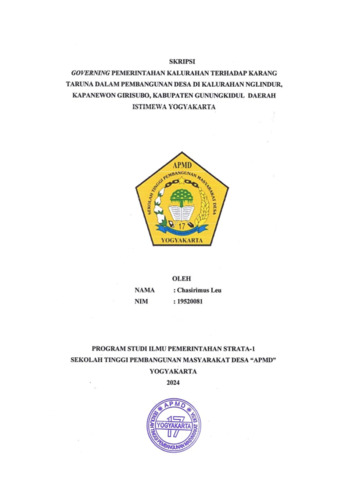 LEU, CHASIRIMUS LEU (2024) GOVERNING PEMERINTAHAN KALURAHAN TERHADAP KARANG TARUNA DALAM PEMBANGUNAN DESA DI KALURAHAN NGLINDUR, KAPANEWON GIRISUBO , KABUPATEN GUNUNGKIDUL DAERAH ISTIMEWA YOGYAKARTA. Sarjana thesis, Sekolah Tinggi Pembangunan Masyarakat Desa STPMD" APMD".