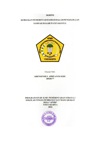 APRIYANTO SEDU, KRENSENSIUS (2024) KEBIJAKAN PEMERINTAH DAERAH DALAM PENGELOLAAN SAMPAH DI KABUPATEN BANTUL. Sarjana thesis, Sekolah Tinggi Pembangunan Masyarakat Desa STPMD "APMD".