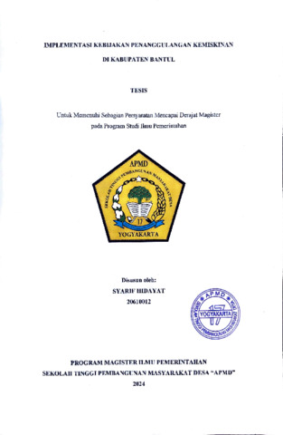 HIDAYAT, SYARIF (2024) IMPLEMENTASI KEBIJAKAN PENANGGULANGAN KEMISKINAN DI KABUPATEN BANTUL. Masters thesis, Sekolah Tinggi Pembangunan Masyarakat Desa STPMD "APMD".