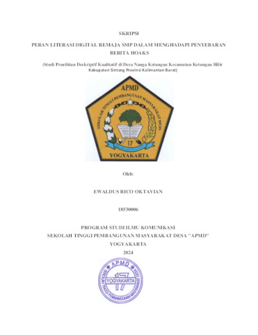 Oktavian, Ewaldus Rico (2024) PERAN LITERASI DIGITAL REMAJA SMP DALAM MENGHADAPI PENYEBARAN BERITA HOAKS (Studi Penelitian Deskriptif Kualitatif di Desa Nanga Ketungau Kecamatan Ketungau Hilir Kabupaten Sintang Provinsi Kalimantan Barat). Sarjana thesis, Sekolah Tinggi Pembangunan Masyarakat Desa STPMD "APMD".