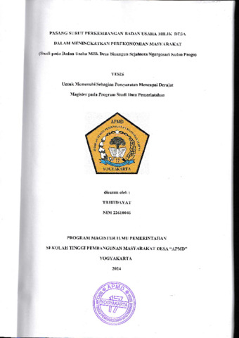 TRIHIDAYAT, TRIHIDAYAT (2024) PASANG SURUT PERKEMBANGAN BADAN USAHA MILIK DESA DALAM MENINGKATKAN PEREKONOMIAN MASYARAKAT. Masters thesis, Sekolah Tinggi Pembangunan Masyarakat Desa STPMD "APMD".