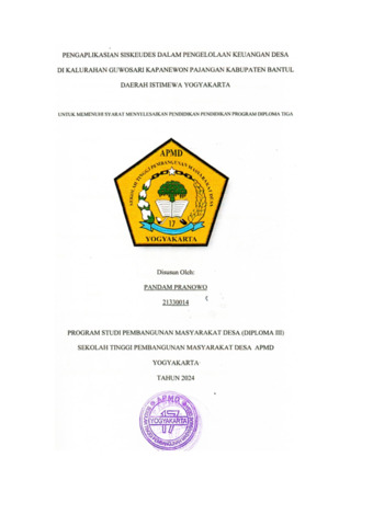 Pranowo, Pandam (2024) Pengaplikasian Siskeudes Dalam Pengelolaan keuangan Desa Di Kalurahan Guwosari Kapanewon Pajangan Kabupaten Bantul DIY. Diploma thesis, Sekolah Tinggi Pembangunan Masyarakat Desa STPMD "APMD".