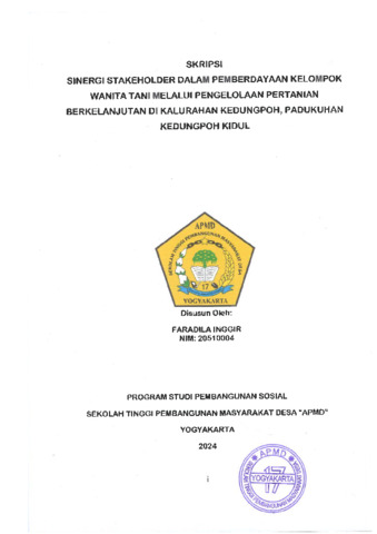 Inggir, Faradila (2024) Sinergi Stakeholder Dalam Pemberdayaan Kelompok Wanita Tani Dalam Pengelolaan Pertanian Berkelanjutan Di Kalurahan Kedungpoh,Padukuhan Kedungpoh Kidul. Sarjana thesis, Sekolah Tinggi Pembangunan Masyarakat Desa STPMD "APMD".