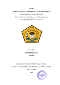 NIKOLIN BAHY, MARIA (2024) PERAN PEMERINTAH KALURAHAN DALAM MEMBERDAYAKAN USAHA MIKRO KECIL DAN MENENGAH. Sarjana thesis, Sekolah Tinggi Pembangunan Masyarakat Desa STPMD "APMD".
