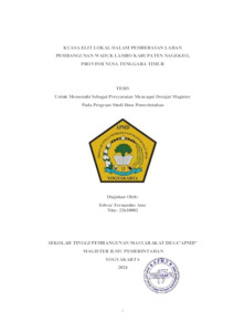 Fernandus Ame, Edwar (2024) KUASA ELIT LOKAL DALAM PEMBEBASAN LAHAN PEMBANGUNAN WADUK LAMBO KABUPATEN NAGEKEO, PROVINSI NUSA TENGGARA TIMUR. Masters thesis, Sekolah Tinggi Pembangunan Masyarakat Desa STPMD "APMD".