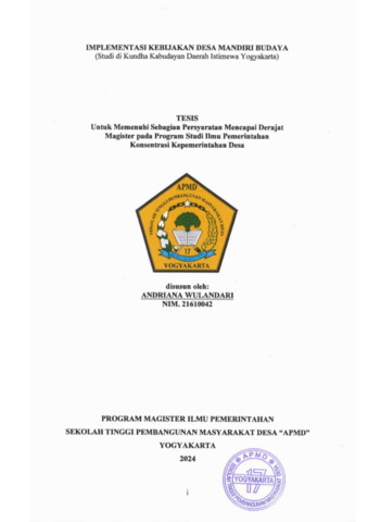 Wulandari, Andriana (2024) IMPLEMENTASI KEBIJAKAN DESA MANDIRI BUDAYA. Masters thesis, Sekolah Tinggi Pembangunan Masyarakat Desa "APMD".