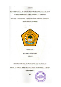 Longo, Handrianto (2024) PENYELENGGARAAN KEWENANGAN PEMERINTAH KALURAHAN DALAM PEMBERDAYAAN MASYARAKAT NELAYAN (Studi Pada Kalurahan Tileng, Kapanewon Girisubo, Kabupaten Gunungkidul, Daerah Istimewa Yogyakarta). Sarjana thesis, Sekolah Tinggi Pembangunan Masyarakat Desa STPMD "APMD".