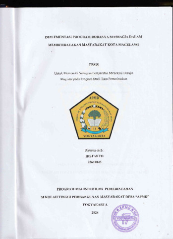 RISTANTO, RISTANTO (2024) MPLEMENTASI PROGRAM RODANYA MASBAGIA DALAM MEMBERDAYAKAN MASYARAKAT KOTA MAGELANG. Masters thesis, Sekolah Tinggi Pembangunan Masyarakat Desa STPMD "APMD".