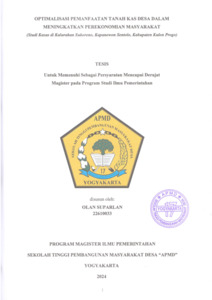 SUPARLAN, OLAN (2024) OPTIMALISASI PEMANFAATAN TANAH KAS DESA DALAM MENINGKATKAN PEREKONOMIAN MASYARAKAT (Studi Kasus di Kalurahan Sukoreno, Kapanewon Sentolo, Kabupaten Kulon Progo). Masters thesis, Sekolah Tinggi Pembangunan Masyarakat Desa "APMD".