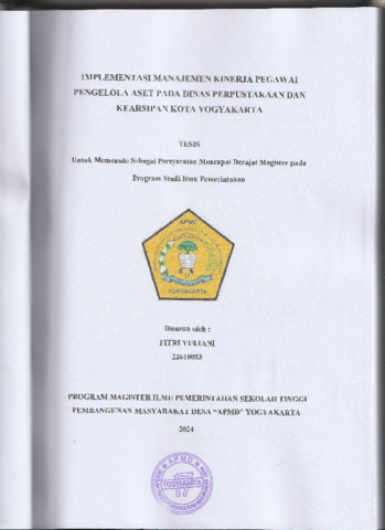 YULIANI, FITRI (2024) Implementasi Manajemen Kinerja Pegawai Pengelola Aset Pada Dinas Perpustakaan dan Kearsipan Kota Yogyakarta. Masters thesis, Sekolah Tinggi Pembangunan Masyarakat Desa STPMD "APMD".