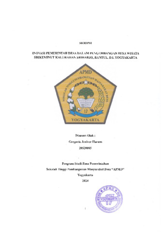 JENIVER HARUM, GREGORIA (2024) INOVASI PEMERINTAH DESA DALAM PENGEMBANGAN DESA WISATA SRIKEMINUT KALURAHAN SRIHARJO, KAPANEWON IMOGIRI KABUPATEN BANTUL, DAERAH ISTIMEWA YOGYAKARTA. Sarjana thesis, Sekolah Tinggi Pembangunan Masyarakat Desa STPMD "APMD".