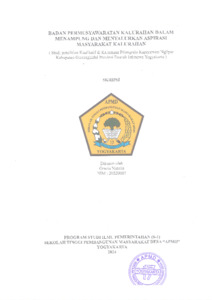 Natalia, Gracia (2024) BADAN PERMUSYAWARATAN KALURAHAN DALAM MENAMPUNG DAN MENYALURKAN ASPIRASI MASYARAKAT KALURAHAN. Sarjana thesis, Sekolah Tinggi Pembangunan Masyarakat Desa "APMD".
