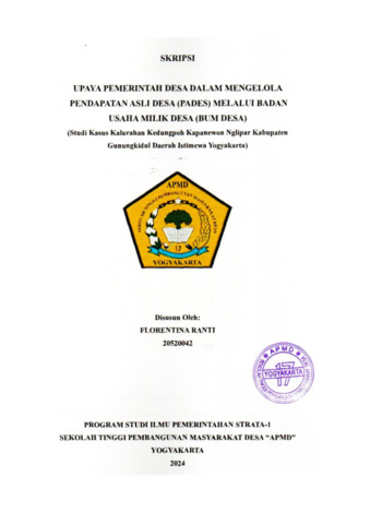 RANTI, FLORENTINA (2024) UPAYA PEMERINTAH DESA DALAM MENGELOLA PENDAPATAN ASLI DESA (PADES) MELAUI BADAN USAHA MILIK DESA (BUM DESA). Sarjana thesis, Sekolah Tinggi Pembangunan Masyarakat Desa STPMD "APMD".