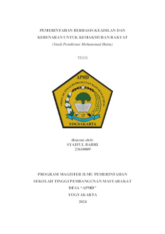 BAHRI, SYAIFUL (2024) PEMERINTAHAN BERBASIS KEADILAN DAN KEBENARAN UNTUK KEMAKMURAN RAKYAT (Studi Pemikiran Mohammad Hatta). Masters thesis, Sekolah Tinggi Pembangunan Masyarakat Desa STPMD "APMD".