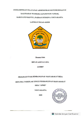 Adityatama, Bryan (2025) PENDAMPINGAN PELAYANAN ADMINISTRASI KEPENDUDUKAN DI KALURAHAN WIJIREJO KAPANEWON PANDAK KABUPATEN BANTUL DAERAH ISTIMEWA YOGYAKARTA. Diploma thesis, Sekolah Tinggi Pembangunan Masyarakat Desa STPMD "APMD".