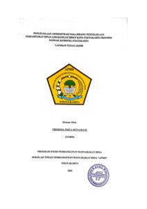 Setyawati, Prita Theresia (2025) PENGELOLAAN ADMINISTRASI PADA BIDANG PENGELOLAAN PERSAMPAHAN DINAS LINGKUNGAN HIDUP KOTA YOGYAKARTA PROVINSI DAERAH ISTIMEWA YOGYAKARTA. Diploma thesis, Sekolah Tinggi Pembangunan Masyarakat Desa STPMD "APMD".