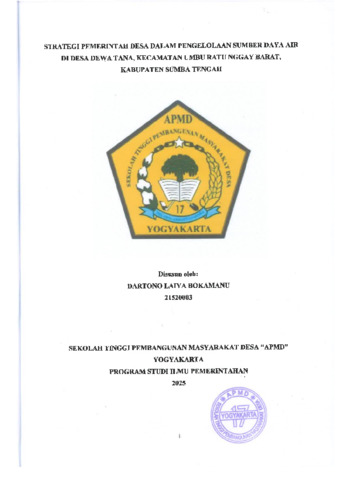 Bokamanu, Dartono Laiya (2025) STRATEGI PEMERINTAH DESA DALAM PENGELOLAAN SUMBER DAYA AIR DI DESA DEWA TANA, KECAMATAN UMBU RATU NGGAY BARAT, KABUPATEN SUMBA TENGAH. Sarjana thesis, Sekolah Tinggi Pembangunan Masyarakat Desa STPMD "APMD".