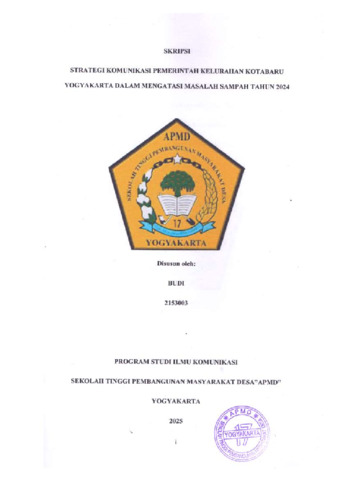 Budi, Budi (2025) STRATEGI KOMUNIKASI PEMERINTAH KELURAHAN KOTABARU YOGYAKARTA DALAM MENGATASI MASALAH SAMPAH TAHUN 2024. Sarjana thesis, Sekolah Tinggi Pembangunan Masyarakat Desa STPMD "APMD".