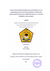 Zefora, Zefora (2025) STRATEGI PEMERINTAH DESA DALAM PEMBANGUNAN INFRASTRUKTUR JALAN DI KALURAHAN TRIWIDADI, KAPANEWON PAJANGAN, KABUPATEN BANTUL, DAERAH ISTIMEWA YOGYAKARTA. Sarjana thesis, Sekolah Tinggi Pembangunan Masyarakat Desa "APMD".