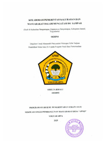 INTISARI Penelitian ini bertujuan untuk mendeskripsikan kolaborasi antara pemerintah Kalurahan Banguntapan dan masyarakat dalam mengatasi isu sampah di Kalurahan Banguntapan, Kabupaten Bantul, Yogyakarta. Kolaborasi ini dianalisis melalui pendekatan collaborative governance, yang merupakan proses kerja sama antara pemerintah dan pihak-pihak di luar lembaga negara (non-state) dalam merumuskan dan melaksanakan kebijakan publik untuk mencapai tujuan bersama. Collaborative governance menekankan pentingnya konsensus, dialog, dan partisipasi aktif dari berbagai pemangku kepentingan dalam pengelolaan isu publik. Saat ini eksistensi desa bukan lagi berdiri sebagai objek pembangunan, Bahwa pembangunan desa tidak lagi diatur melalui regulasi sentralistik yang berciri pemerataan pembangunan tanpa memperhatikan kebutuhan utama setiap desa. Tetapi desa telah berdiri tegak menjadi pelaksana dan penindak atas pembangunan itu sendiri. Sebagaimana yang telah tertera pada undang-undang nomor 6 tahun 2014 menegaskan bahwa desa adalah subjek dalam pembangunan, kebijakan, dan dalam bertindak. Desa berhak dan memiliki wewenang untuk merancang dan melaksanakan produk kebijakannya sendiri secara bebas, terukur, dan mandiri (Haris dalam Angkupi, 2022). Kebijakan yang dirancang oleh pemerintah desa seharusnya selalu menjungjung tinggi kepentingan masyarakat desa. Penelitian ini menggunakan pendekatan kualitatif. Subjek penelitian terdiri dari pihak pemerintah kalurahan Banguntapan, BUMKal Banguntapan, Petugas TPST Modalan, dan Masyarakat yang terlibat dalam upaya menangani isu sampah. Data dikumupulkan dengan cara wawancara dan studi dokumentasi. Penyajian data dilakukan dengan cara deskriptif. Hasil penelitian menunjukkan bahwa kolaborasi antara pemerintah Kalurahan Banguntapan dan masyarakat dalam menangani isu sampah telah membangun kepercayaan melalui forum musyawarah padukuhan dan kalurahan. Pemerintah berperan sebagai regulator dan fasilitator dengan menyediakan infrastruktur dan kebijakan, sementara masyarakat berpartisipasi aktif dalam program pengelolaan sampah. Pembagian tanggung jawab yang jelas antara pemerintah, BUMKal, dan masyarakat telah meningkatkan efektivitas pengelolaan sampah. Kolaborasi ini juga memberikan manfaat ekonomi melalui bank sampah dan menciptakan lingkungan yang lebih bersih dan berkelanjutan. Secara keseluruhan, penelitian ini menyimpulkan bahwa kolaborasi antara pemerintah dan masyarakat merupakan kunci keberhasilan dalam mengatasi isu sampah di Kalurahan Banguntapan. Kata Kunci: Sampah, Kolaborasi, Masyarakat, Pemerintah Kalurahan