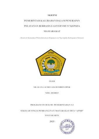 Imbeyoper, Silas Cllaudio Adam (2025) PEMERINTAH KALURAHAN DALAM PENERAPAN PELAYANAN BERBASIS E-GOVERNMENT KEPADA MASYARAKAT (Studi di Kalurahan Widodomartani Kapanewon Ngemplak Kabupaten Sleman). Sarjana thesis, Sekolah Tinggi Pembangunan Masyarakat Desa "APMD".