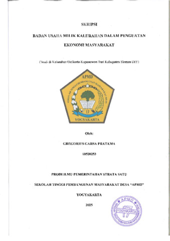 Pratama, Gregorius Garsa (2025) BADAN USAHA MILIK KALURAHAN DALAM PENINGKATAN EKONOMI MASYARAKAT KALURAHAN GIRIKERTO. Sarjana thesis, Sekolah Tinggi Pembangunan Masyarakat Desa STPMD "APMD".