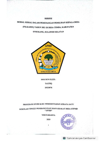 Taufiq, Taufiq (2025) MODAL SOSIAL DALAM PEMENANGAN PEMILIHAN KEPALA DESA (PILKADES) TAHUN 2021 DI DESA CEMBA, KABUPATEN ENREKANG, SULAWESI SELATAN. Sarjana thesis, Sekolah Tinggi Pembangunan Masyarakat Desa STPMD "APMD".