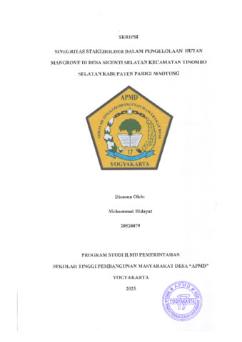 HIDAYAT, MOHAMMAD (2025) SINEGRITAS STAKEHOLDER DALAM PENGELOLAAN HUTAN MANGROVE DI DESA SIGENTI SELATAN KECAMATAN TINOMBO SELATAN KABUPATEN PARIGI MAOTUNG. Sarjana thesis, Sekolah Tinggi Pembangunan Masyarakat Desa "APMD".