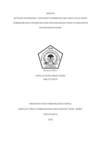 SAIBA, APRILLIA DISTA MERIJ (2025) MITIGASI KEKERASAN TERHADAP PEREMPUAN DAN ANAK OLEH DINAS PEMBERDAYAAN PEREMPUAN DAN PERLINDUNGAN ANAK DI KABUPATEN PEGUNUNGAN ARFAK. Sarjana thesis, Sekolah Tinggi Pembangunan Masyarakat Desa STPMD "APMD".