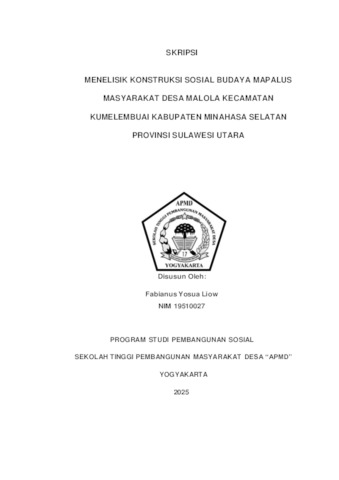 Liow, Fabianus Yosua (2025) MENELISIK KONSTRUKSI SOSIAL BUDAYA MAPALUS MASYARAKAT DESA MALOLA KECAMATAN KUMELEMBUAI KABUPATEN MINAHASA SELATAN PROVINSI SULAWESI UTARA. Sarjana thesis, Sekolah Tinggi Pembangunan Masyarakat Desa STPMD "APMD".
