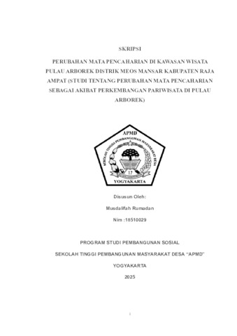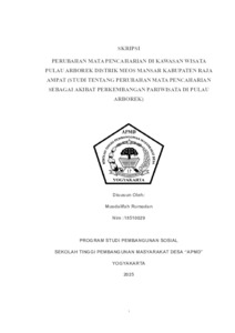 Rumadan, Musdalifah (2025) PERUBAHAN MATA PENCAHARIAN DI KAWASAN WISATA PULAU ARBOREK DISTRIK MEOS MANSAR KABUPATEN RAJA AMPAT (STUDI TENTANG PERUBAHAN MATA PENCAHARIAN SEBAGAI AKIBAT PERKEMBANGAN PARIWISATA DI PULAU ARBOREK). Sarjana thesis, Sekolah Tinggi Pembangunan Masyarakat Desa STPMD "APMD".