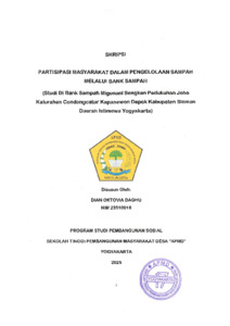 DAGHU, DIAN OKTOVIA (2025) Partisipasi Masyarakat dalam Sampah melalui Bank Sampah. Sarjana thesis, Sekolah Tinggi Pembangunan Masyarakat Desa STPMD "APMD".