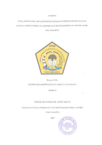PARERA GONZALES RAUL, BONFILIO BONEFASIUS (2025) PENGARUH KOMUNIKASI EFEKTIF TERHADAP KEPUASAN PELAYANAN BAGIAN ADMINISTRASI AKADEMIK DAN KEMAHASISWAAN STPMD APMD YOGYAKARTA. Sarjana thesis, Sekolah Tinggi Pembangunan Masyarakat Desa "APMD".