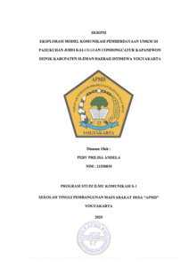ANDELA, PRILISA PEBY (2025) EKSPLORASI MODEL KOMUNIKASI PEMBERDAYAAN UMKM DI PADUKUHAN JOHO KALURAHAN CONDONGCATUR KAPANEWON DEPOK KABUPATEN SLEMAN DAERAH ISTIMEWA YOGYAKARTA. Sarjana thesis, Sekolah Tinggi Pembangunan Masyarakat Desa "APMD".