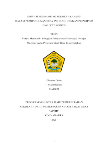 Asmiyanto, Tri (2025) INOVASI PENDAMPING SEKOLAH LAPANG DALAM PEMBANGUNAN DESA INKLUSIF DENGAN PRINSIP NO ONE LEFT BEHIND. Masters thesis, Sekolah Tinggi Pembangunan Masyarakat Desa "APMD".