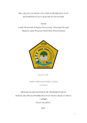 Crisostomus Sado, John (2025) PELAKSANAAN RENCANA INDUK PEMBANGUNAN KEPARIWISATAAN DI KABUPATEN ENDE. Masters thesis, Sekolah Tinggi Pembangunan Masyarakat Desa STPMD "APMD".