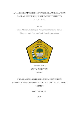 Indriyani, Anita (2025) ANALISIS KEMANDIRIAN PENGELOLAAN KEUANGAN DAERAH STUDI KASUS DI PEMERINTAH KOTA MAGELANG. Masters thesis, Sekolah Tinggi Pembangunan Masyarakat Desa STPMD "APMD".