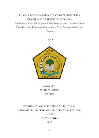 Wibowo, Indra (2025) KOMPARASI MANAJEMEN STRATEGI PENGHAPUSAN KEMISKINAN EKSTREM DI INDONESIA (Studi Kasus Ganda di Kabupaten Kulon Progo Provinsi Daerah Istimewa Yogyakarta dan Kabupaten Kotawaringin Barat Provinsi Kalimantan Tengah). Masters thesis, Sekolah Tinggi Pembangunan Masyarakat Desa STPMD "APMD".