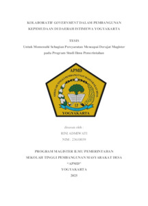Admiwati, Rini (2025) KOLABORATIF GOVERNMENT DALAM PEMBANGUNAN KEPEMUDAAN DI DAERAH ISTIMEWA YOGYAKARTA. Masters thesis, Sekolah Tinggi Pembangunan Masyarakat Desa STPMD "APMD".