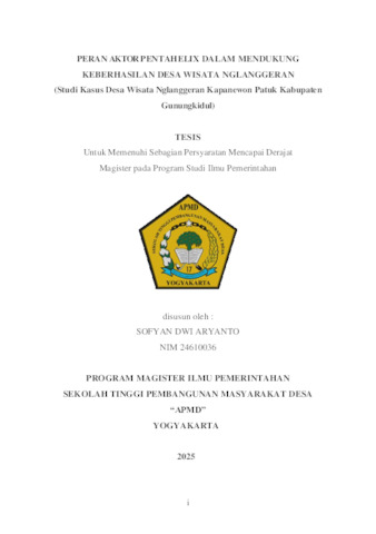Aryanto, Sofyan Dwi (2025) PERAN AKTOR PENTAHELIX DALAM MENDUKUNG KEBERHASILAN DESA WISATA NGLANGGERAN (Studi Kasus Desa Wisata Nglanggeran Kapanewon Patuk KabupatenGunungkidul). Masters thesis, Sekolah Tinggi Pembangunan Masyarakat Desa STPMD "APMD".