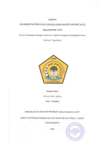 SIWA, ELSAVAN U (2025) Pemerintah Desa dalam Melindungi Petani melalui Kelompok Tani (Studi di Kalurahan Katongan Kapanewon Nglipar Kabupaten Gunungkidul Daerah Istimewa Yogyakarta). Sarjana thesis, Sekolah Tinggi Pembangunan Masyarakat Desa STPMD "APMD".