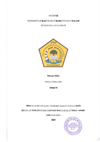 GORAAHE, FISAL (2025) Pemerintah Kalurahan Banguntapan dalam Pengelolaan Sampah. Sarjana thesis, Sekolah Tinggi Pembangunan Masyarakat Desa STPMD "APMD".