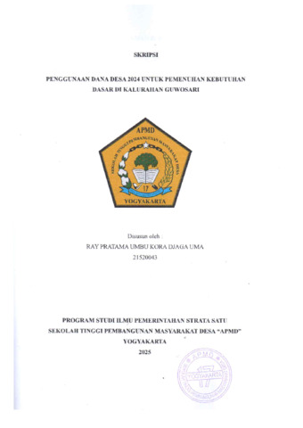 UMA, RAY PRATAMA UMBU KORA DJAGA (2025) PENGGUNAAN DANA DESA 2024 UNTUK PEMENUHAN KEBUTUHAN DASAR DI KALURAHAN GUWOSARI. Sarjana thesis, Sekolah Tinggi Pembangunan Masyarakat Desa STPMD "APMD".