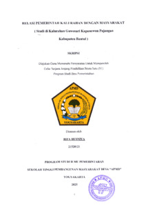 HUSNIYA, RIFA (2025) Relasi Pemerintah Kalurahan dengan Masyarakat ( Studi di Kalurahan Guwosari Kapanewon Pajangan Kabupaten Bantul ). Sarjana thesis, Sekolah Tinggi Pembangunan Masyarakat Desa STPMD "APMD".