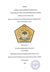 HALU, YULIANUS JORDIANDRA TOKE (2025) Kerjasama Pemerintah Desa dan Masyarakat Desa dalam Pengelolaan Desa Wisata Cunca Wulang (Desa Cunca Wulang Kecamatan Mbeliling Kabupaten Manggarai Barat Provinsi Nusa Tenggara Timur). Sarjana thesis, Sekolah Tinggi Pembangunan Masyarakat Desa STPMD "APMD".